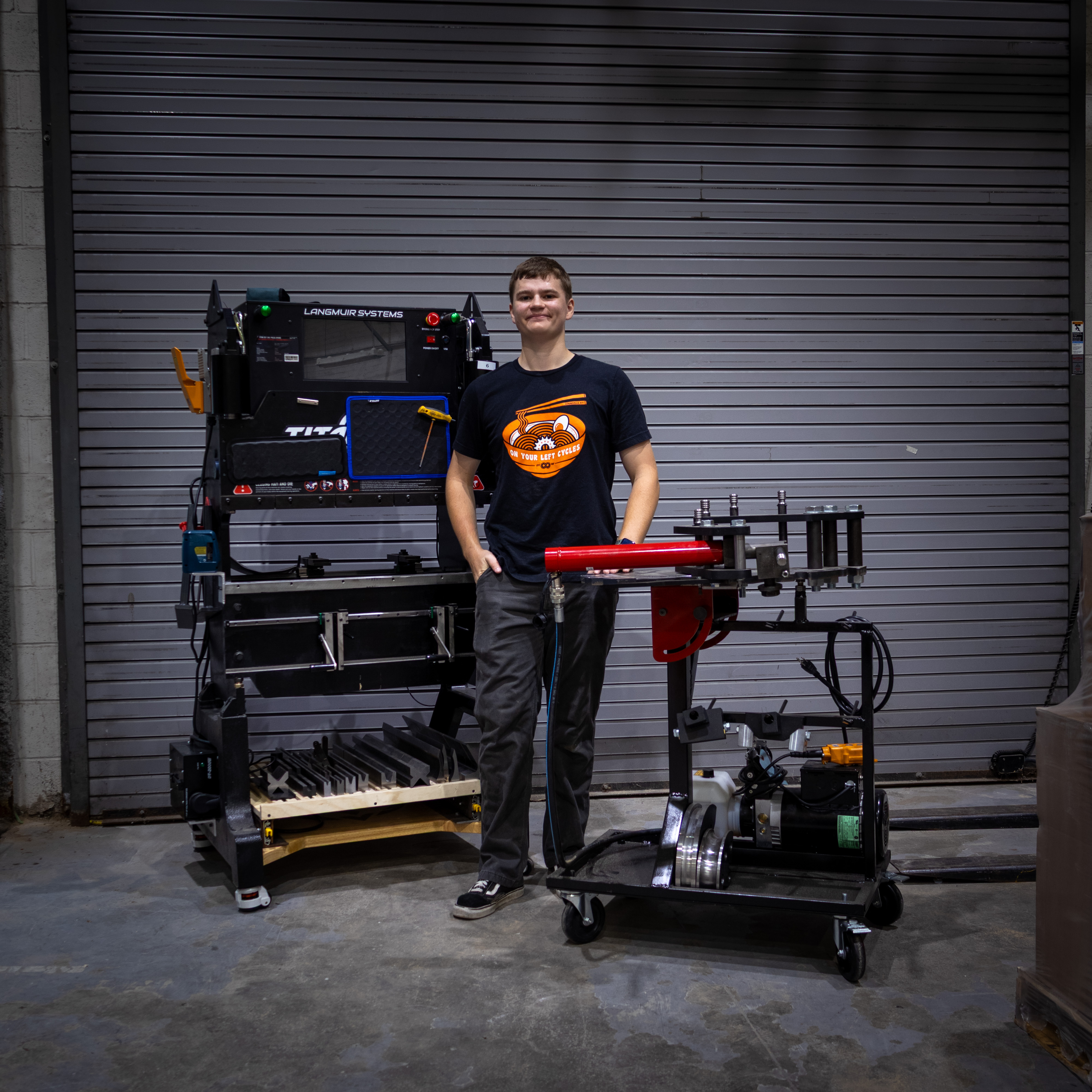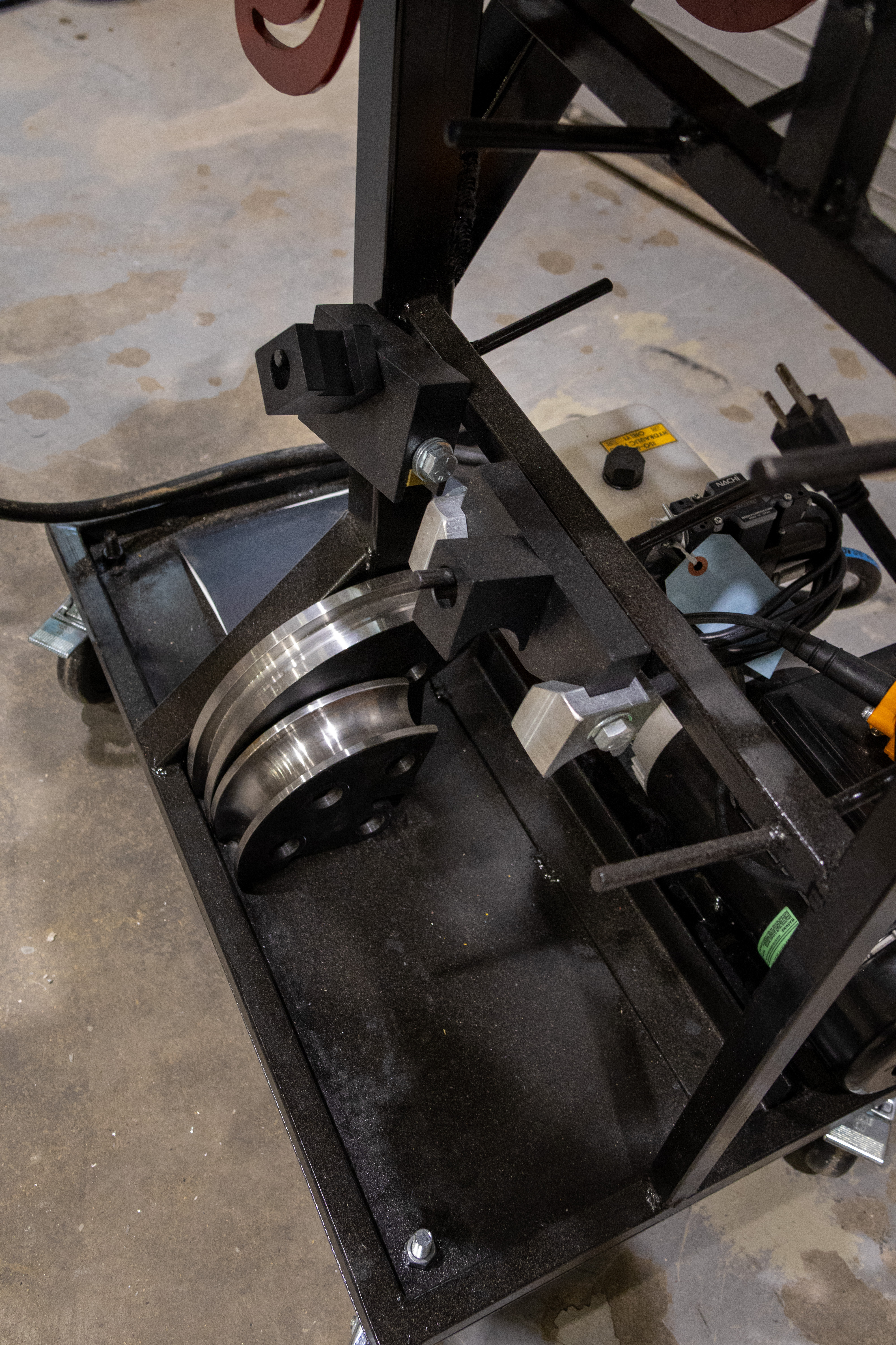 The goal of this project was to replace the OEM stand that was designed to be bolted to the ground. Becuase of the nature of the RI shop, the Model 4 tubing bender needed to be portable and tuck away in a corner when not in use.