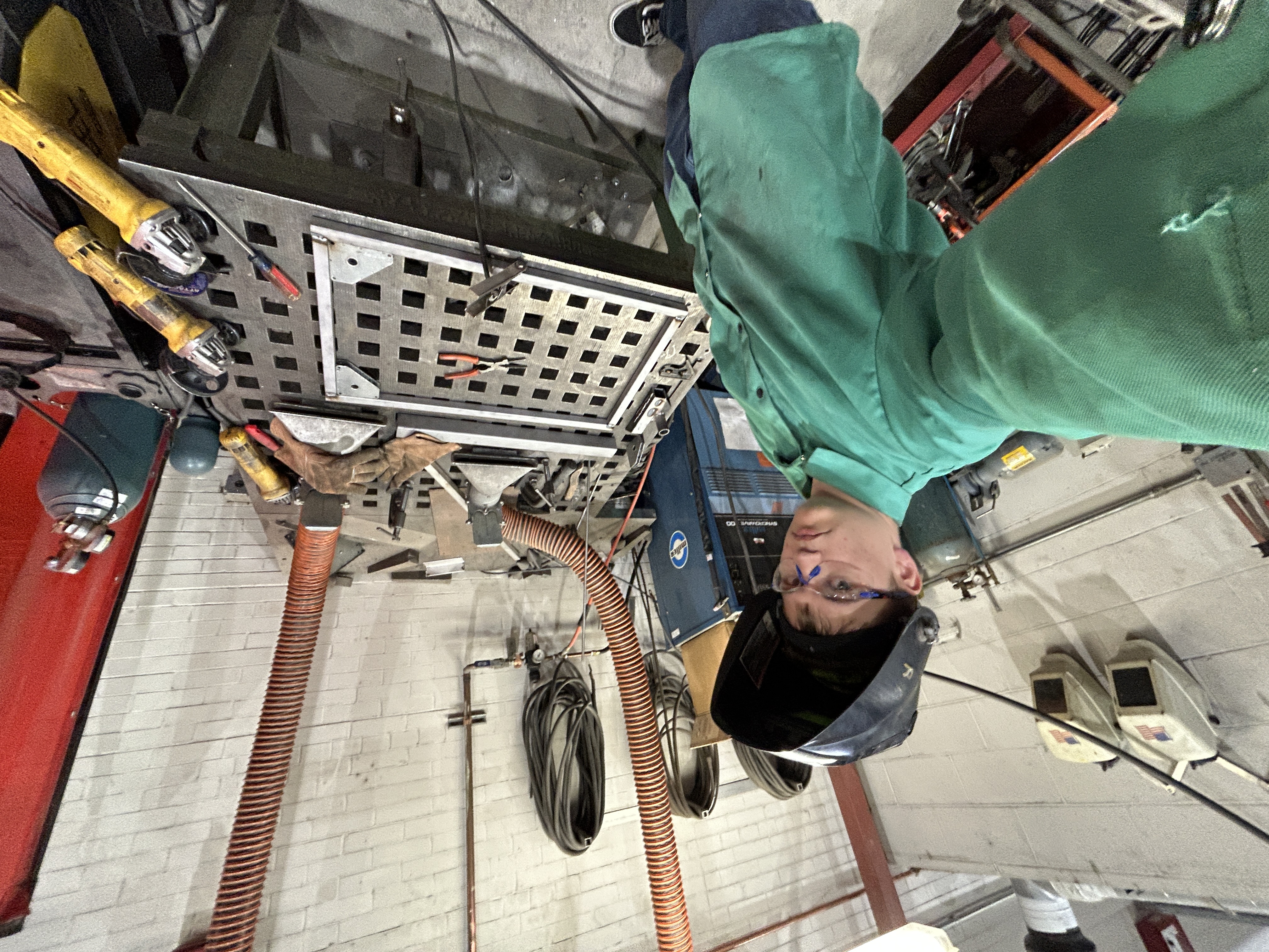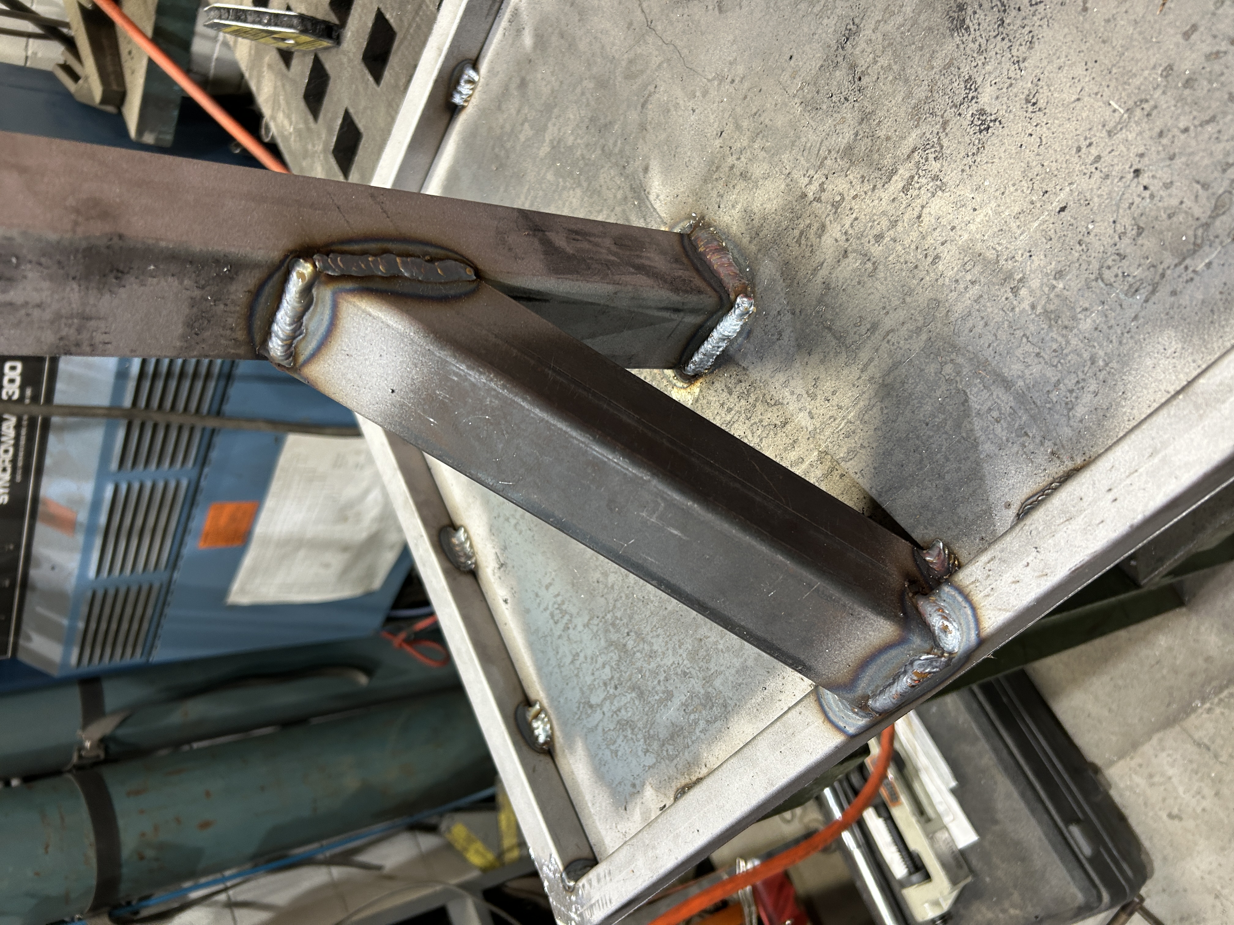 For my first time welding, my mentor taught me how to tack the frame together and attempt prevent it from warping. I somehow kept it square and flat when welding up this frame made of 1x1 inch mild steel square tube.